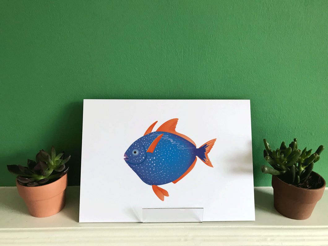 Packaged in a cello bag with card backing. Please note this art print comes unframed and has a border (total size is A4 / A3, as above).